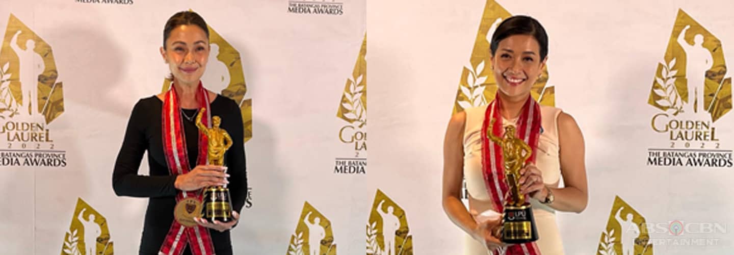 | Golden Laurel Batangas Province Media Awards 2022 winners Jodi Sta. Maria (Best Drama Actress) and Bernadette Sembrano (Female News Anchor of the Year and Best Public Service Program Host) (Image Source: ABS-CBN Corporation/Lyceum of the Philippines University Batangas) |