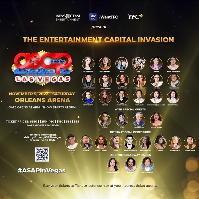 Ahh, Las Vegas! A city where the cheapest ticket to an Adele residency concert is US$999, and where there are presently no more available tickets to residencies of the likes of Katy Perry, Miranda Lambert, Usher, John Legend, Barry Manilow and even to novelty shows like "America's Got Talent Live Las Vegas" and "Drag Brunch at Senor Frog's". When it comes to entertainment right now, all roads simply lead to Las Vegas. Thus, ABS-CBN Events, iWantTFC and The Filipino Channel (TFC) decided to bring the Philippines' biggest and longest running TV musical variety series and blockbuster globe-trotting live show, "ASAP Natin' To", to Las Vegas, Nevada on November 5, 2022. The concert will be held at the Orleans Arena, the venue of over 200 big events every year and consistent Top 10 venue in ticket sales in the U.S. and internationally for venues of the same size.