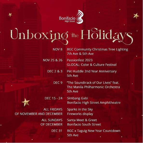 The towering tree, adorned with plenty of glittering lights and ornaments, was unboxed along 7th Avenue of BGC and represented the city’s spirit for the holiday season as its lights and ornaments filled the square with a warm and inviting glow. The unveiling of this year’s Christmas tree at BGC was accompanied by the holiday sounds brought by award-winning vocal group Pinopela who took the stage enchanting the audience with their melodies to the most-beloved Christmas song hits to get everyone in the mood to unbox the holidays. Over the next few weeks, all who step foot in BGC will get to experience the magic of unboxing the holidays with more exciting activities underway from a weekly fireworks display with Sparks in the Sky, unforgettable moments with a Santa Meet and Greet; and daily Simbang Gabi services from December 15-24.