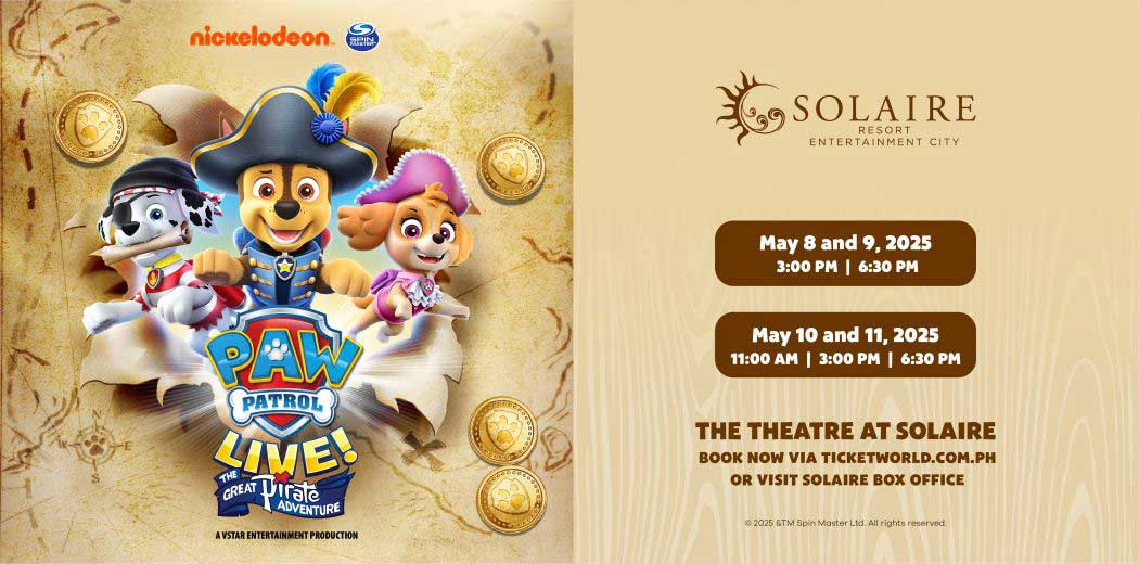 Nickelodeon and VStar Entertainment Group is proud to present PAW Patrol™ Live! “The Great Pirate Adventure”, slated to be held on May 8-11, 2025 at The Theatre at Solaire at the Solaire Resort Entertainment City in Parañaque City, Metro Manila. This action-packed, music-filled production is based on the top-rated animated pre-school series PAW Patrol, produced by Spin Master Entertainment and airing on Nickelodeon and sister channel Nick Jr. Guests will see Ryder and his team of pups embark on a pirate-themed adventure to uncover hid-den treasure.