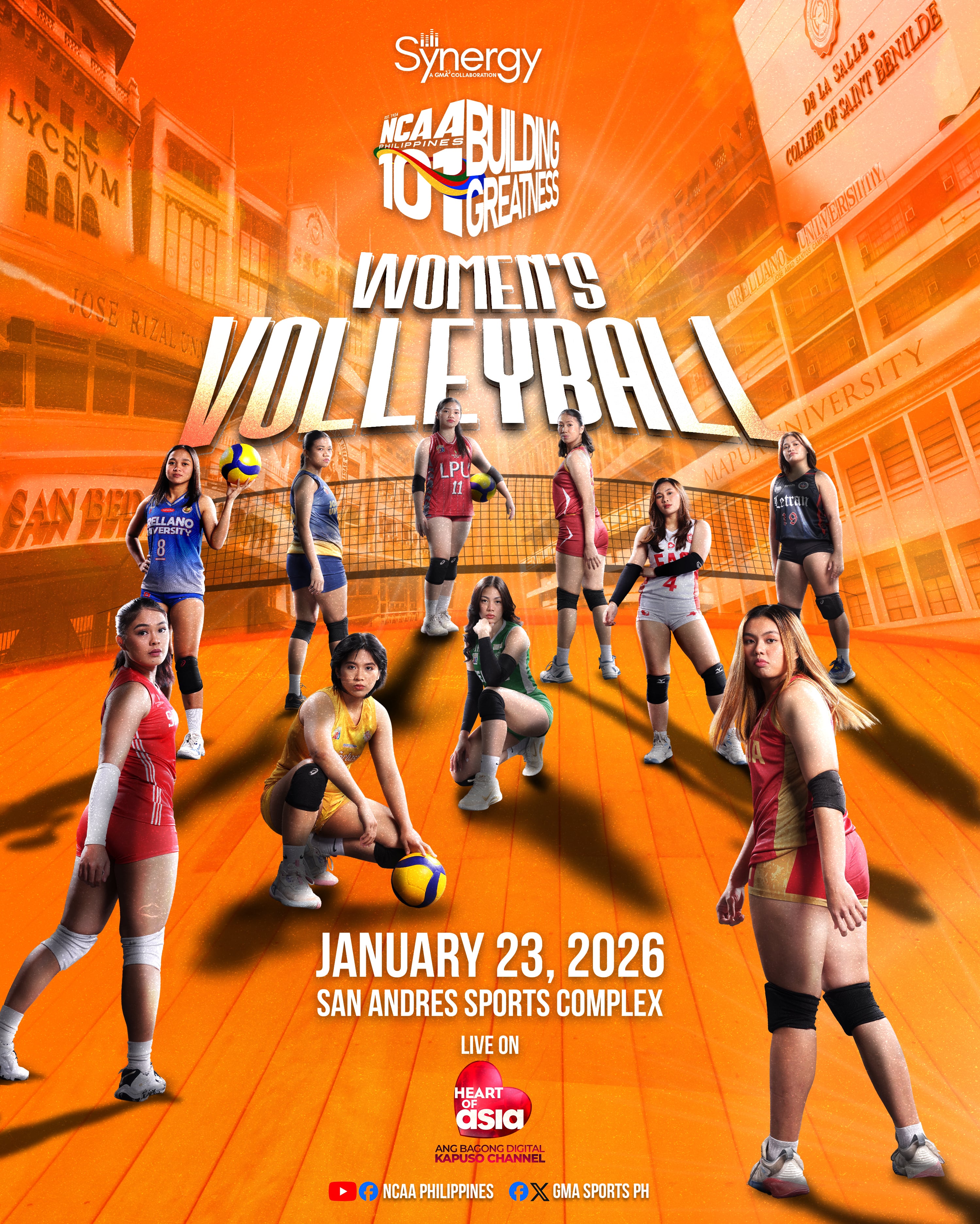 GMA Regional TV Officer-in-Charge and Concurrent Head of Central Office Operations and Synergy Marivic Araneta expressed, “As the proud home of the NCAA, GMA Network, thru GMA Synergy, is committed to providing the best viewing experience for all the NCAA supporters and Kapuso sports enthusiasts. With the competitive spirit of all participating NCAA volleyball teams, this season’s Women’s Volleyball Tournament is definitely something to look forward to. We invite everyone to show their support and witness the incomparable determination and world-class skills of all student athletes.”