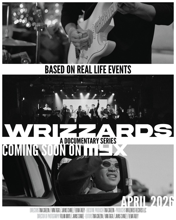 MYX zeroes in on the journey of four Filipino American independent music artists in the new weekly documentary series “WRIZZARDS: Underground Uprising”, premiering on April 18, 2026 and airs every Saturday at 7:00 pm in the Philippines and the US, 7:00 am in Dubai, and 1:00 pm in Guam. The series follows the Washington Rizzards or WRIZZARDS for short, composed of multi-genre artists J Matty, Bema Tadey, LEIF, and Tina Carzon, who are all based in the DC, Maryland, and Virginia region and are carving their path in the underground music scene and slowly finding their place on the global stage.