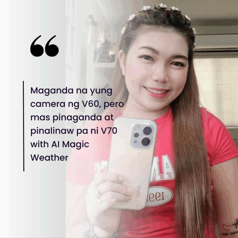 Lorlyn Romano, a small business owner from Sta. Rosa, Laguna, upgraded from the V60 to the V70 because of its better 50MP ZEISS Super Telephoto Camera, equipped with AI features. Lorlyn shared, “Maganda na yung camera ng V60, pero mas pinaganda at pinalinaw pa ni V70 with AI Magic Weather. Mahilig kasi ako sa photography… importante sa akin yung camera, performance, battery life, at storage.” She added that pre-ordering helped her secure the exact color she wanted, stating, “Na-experience ko na maubusan ng color dati with V60, kaya nag pre-order na ako ngayon para sigurado ang Golden Hour colorway ko.”